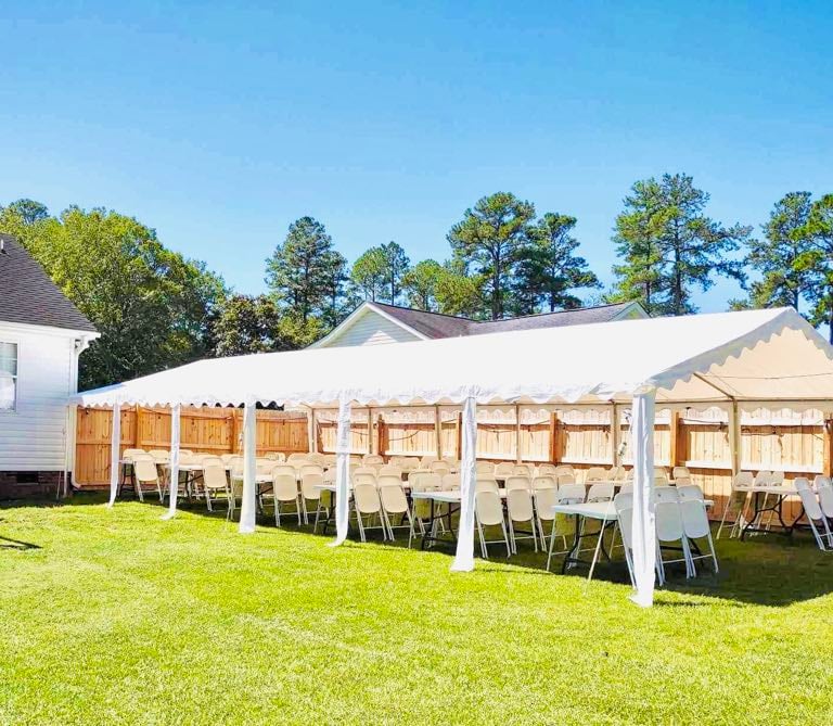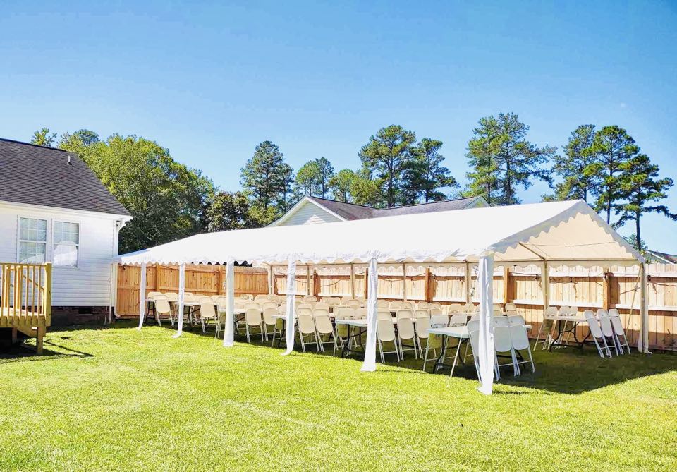Our frame tents are available in a variety of sizes to accommodate any of your party rental needs. Frame tents are available 20 feet wide to 40 feet wide and have few limitations as to where they can be installed. *Sidings(as shown in picture) can be added for Extra cost.